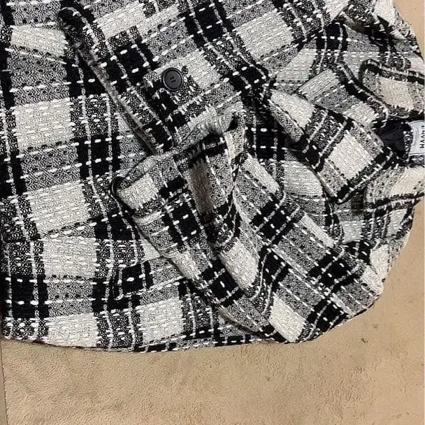 그레이 색상의 폴리에스테르 소재로, 스타일리시한 체크 무늬 테일러드 자켓입니다. - 색상: 그레이 - 소재: 폴리에스테르 100% - 사이즈: 프리 방문해 주셔서 감사합니다. 사이즈 - FREE SIZE