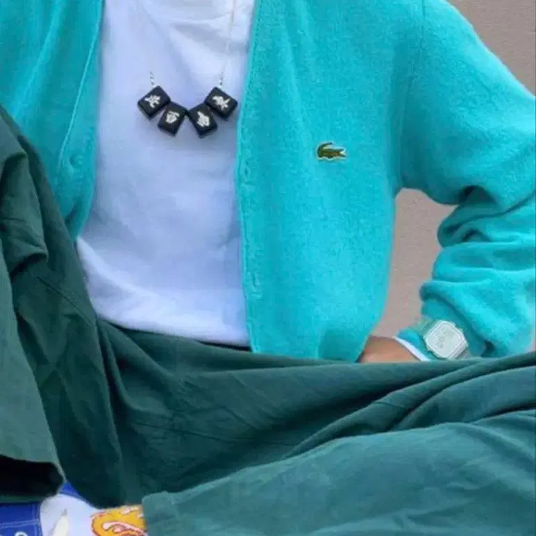 터콰이즈 색상의 Lacoste 가디건입니다.