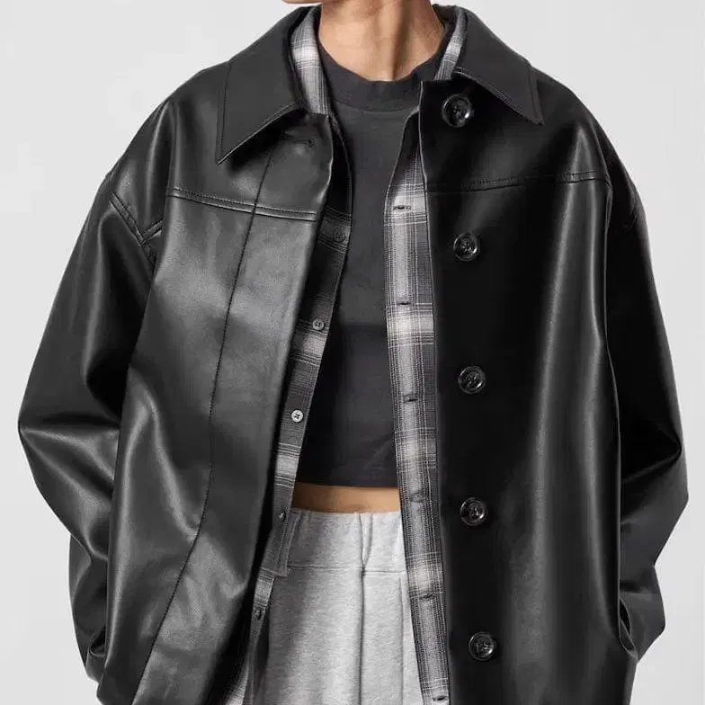인조 가죽 미들 자켓 리디