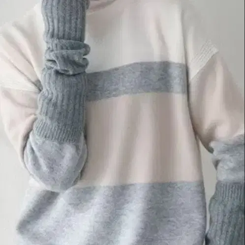 다크 네이비 그레이 스트라이프 터틀넥 니트