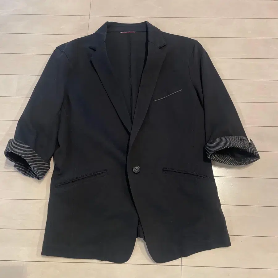 소매가 스트라이프 패턴으로 세련된 니콜의 블랙 테일러드 자켓입니다 ❣️