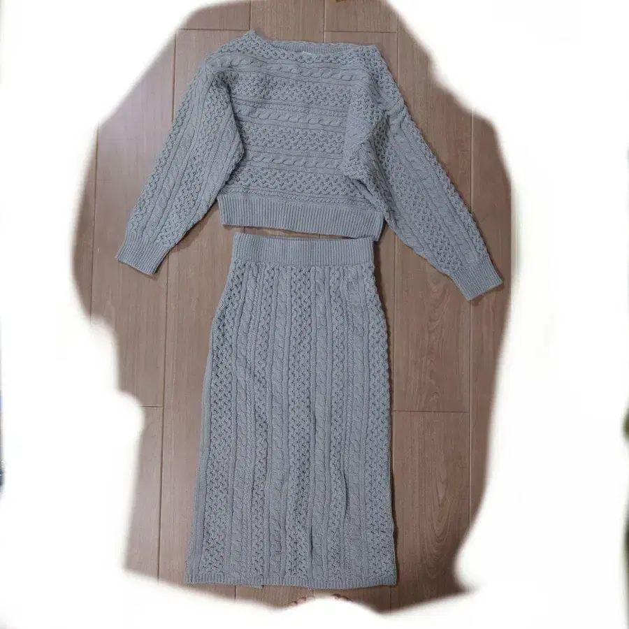 그레이 케이블 짜임 니트 셋업