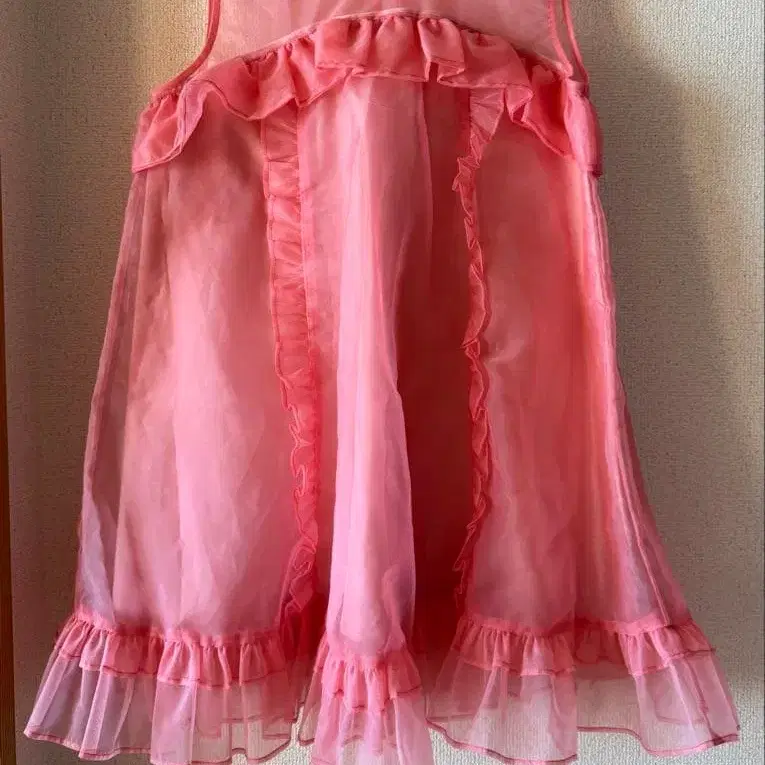 가벼운 오간자 소재의 핑크 슬리브리스 원피스, 프릴 디자인이 특징입니다. - 색상: 핑크 - 디자인: 슬리브리스, 프릴 포함, 시스루 - 스타일: 캐주얼, 페미닌 방문해 주셔서 감사합니다. 사이즈 - FREE SIZE 색상 - 핑크 계열 패턴 - 무지 얼룩, 찢김, 냄새 등 - 없음 미사용 새상품입니다.