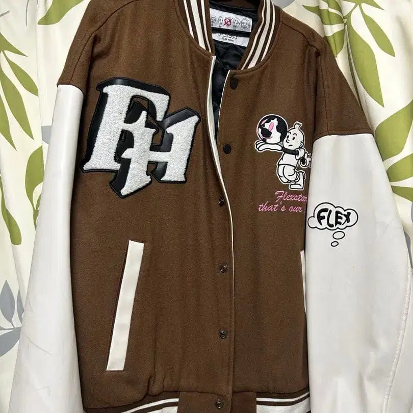 FLIX 바시티 자켓 L 사이즈 브라운/화이트