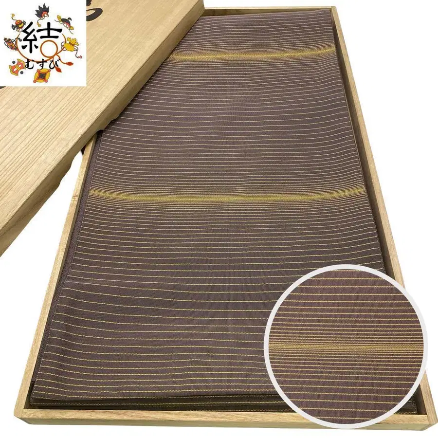 차분한 색감에 가로 줄무늬가 디자인된 전통의 후쿠로 오비입니다.