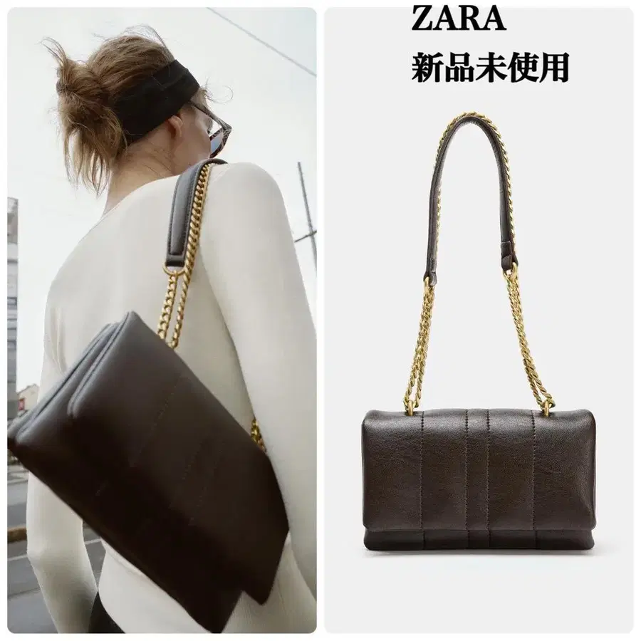 완판템 ZARA 퀼팅 미니 크로스백 택 포함 새상품 초콜릿 색상