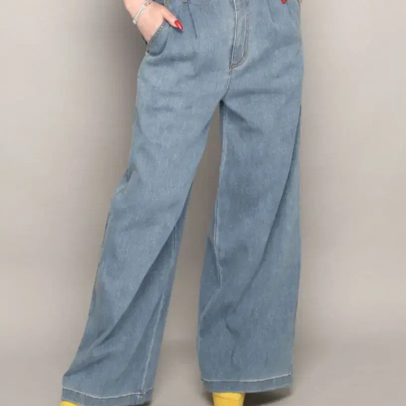 • 택 포함 새상품 미사용 지나시스 컬러 턱 데님 와이드 팬츠