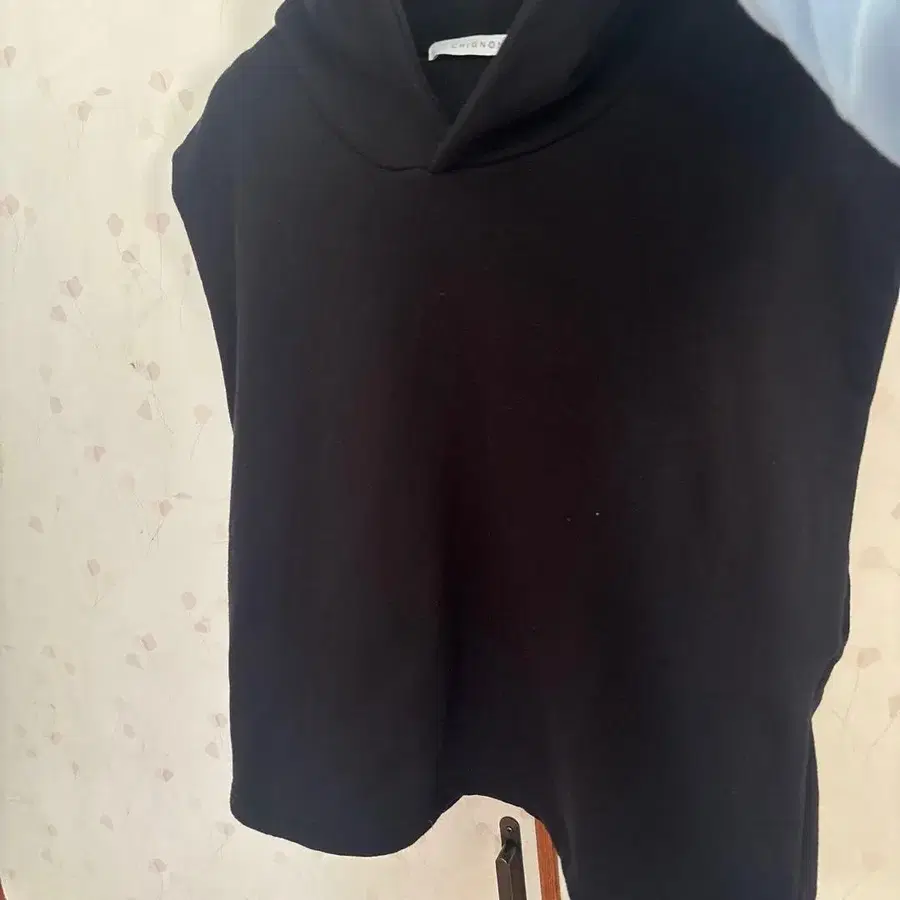 CHIGNON 블랙 후드 부착 슬리브리스 후드티