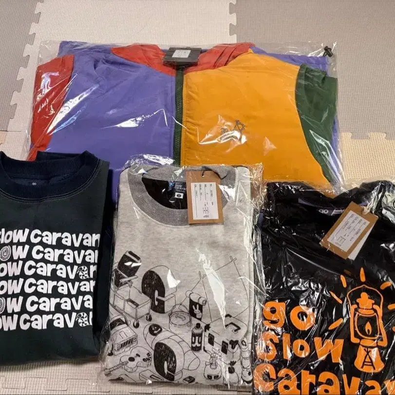 고 슬로우 캐러밴 묶음 판매 맨투맨 2벌 반팔 T셔츠 1벌 아우터 1벌 사이즈: 3 (M 사이즈 상당) T셔츠는 미사용이지만 사진 촬영을 위해 1회 개봉했습니다. 카키색 맨투맨은 몇 번 착용했습니다. 낱개 판매 가능합니다. 부담 없이 댓글 남겨주세요. #고슬로우캐러밴 #go slow caravan