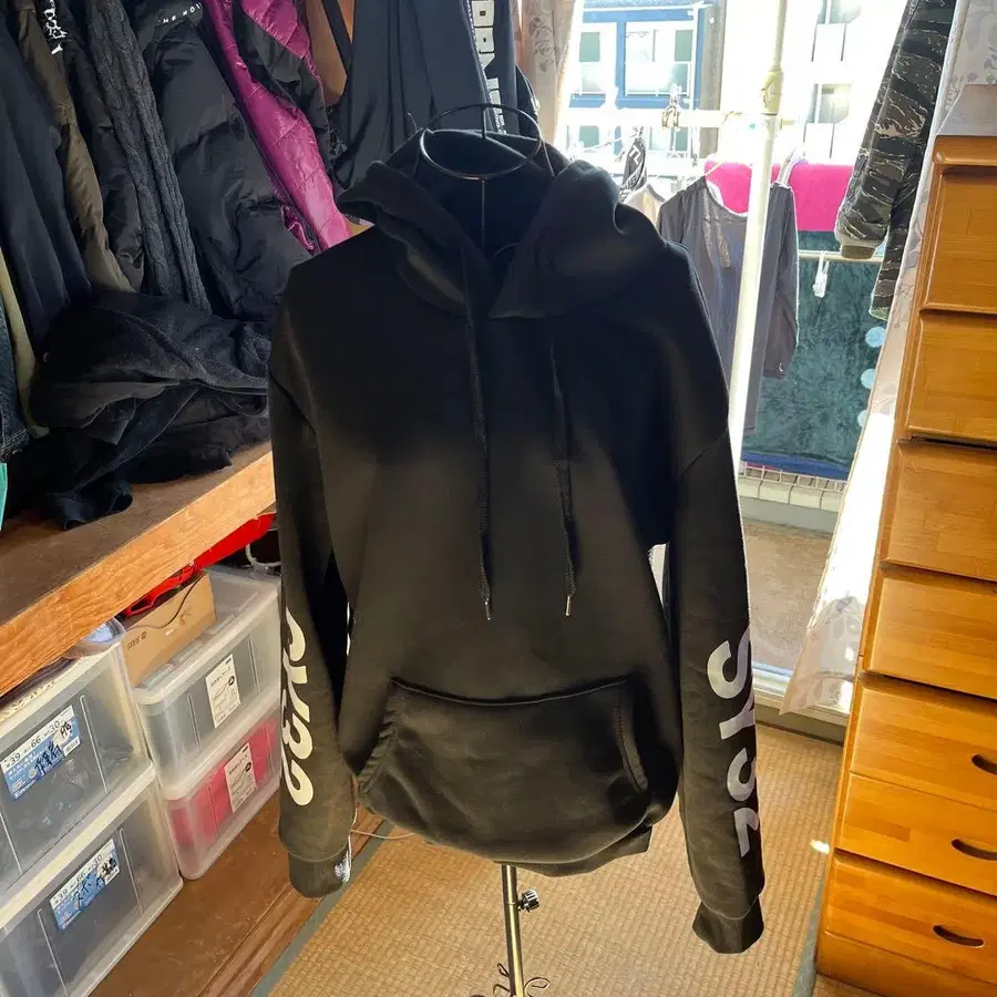 SY32 후드 부착 후드티 블랙