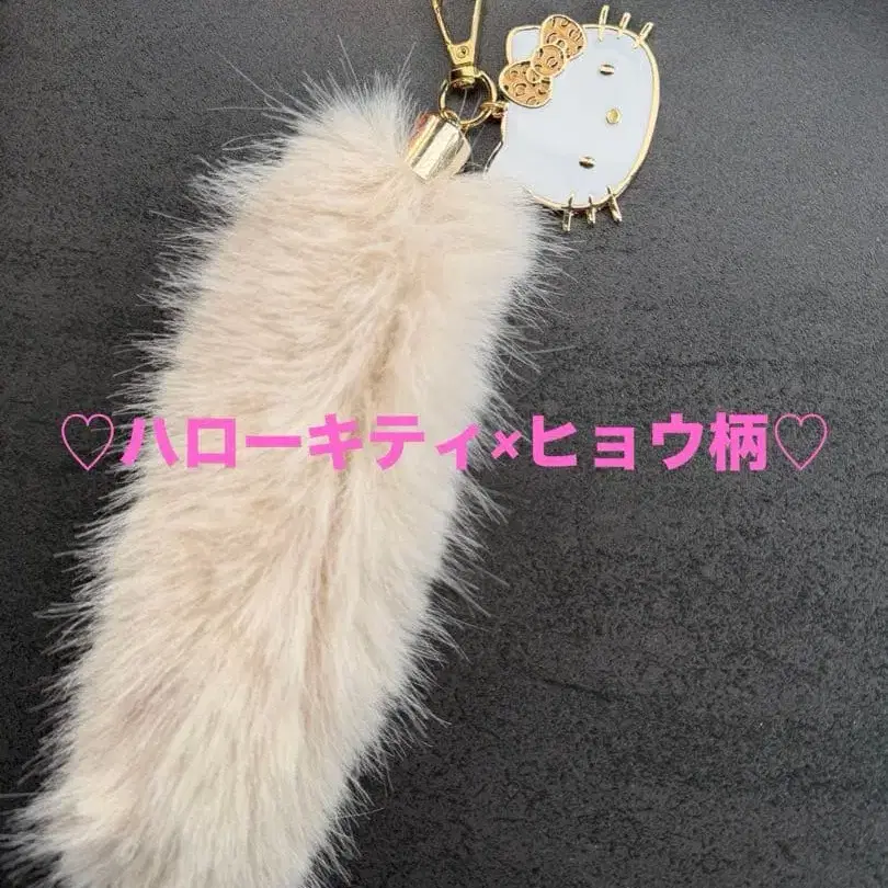 [ 새상품급 ] 헬로키티 퍼 포함 키링 레오파드 무늬