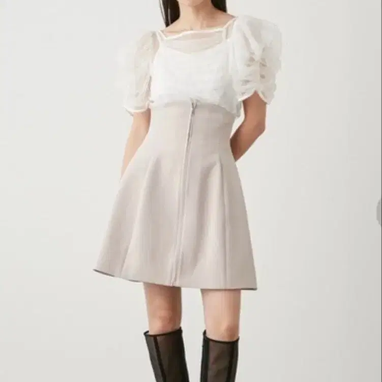 SNIDEL 개더 퍼프 슬리브 튤 TOPS 화이트