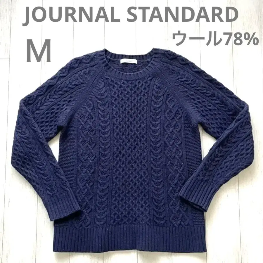 고품질 JOURNAL STANDARD 울 78% 네이비 케이블 니트