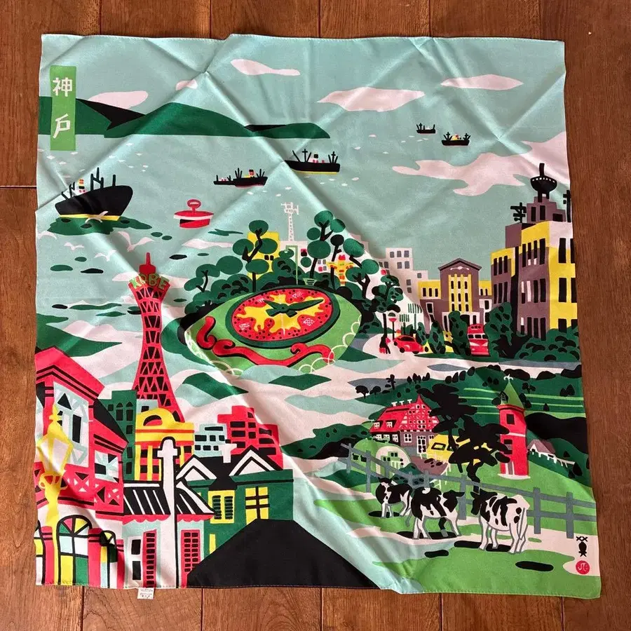 ★ 카와니시 히데 후로시키 판화가 고베 백경도 쇼와 레트로 레어 후지미야비 미야이 주식회사 후지미야비 판화가 카와니시 히데 씨 고베의 풍물을 매우 좋아하여 고베 백경 판화를 비롯해 수많은 고베 풍경의 뛰어난 판화를 만들고 효고현 문화상을 받으신 판화가 카와니시 히데 씨의 고베 백경이 디자인된 후로시키입니다. 사이즈 약 70 x 70cm