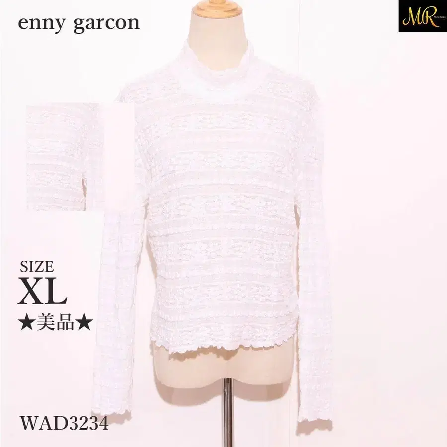 제니 가르송 상의 블라우스 긴팔 레이스 패턴 비침 하이넥 고급