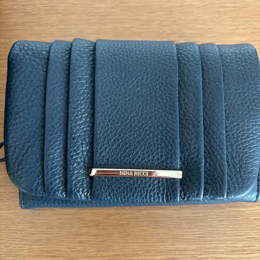네이비 색상의 가죽 접이식 지갑, 카드 포켓 부착. - 브랜드: NINA RICCI - 색상: 모스그린 - 디자인: 접이식 지갑 - 소재: 가죽 - 특징: 카드 포켓 부착 방문해 주셔서 감사합니다.