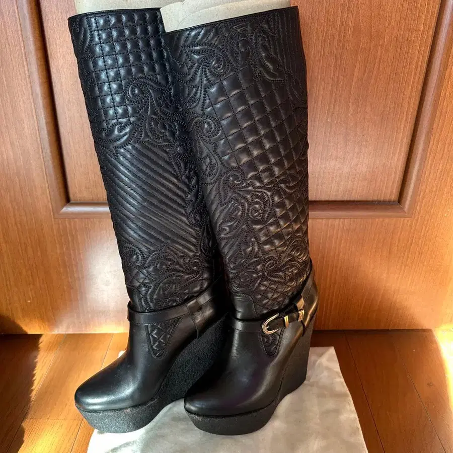 베르사체 천연 가죽 퀼팅 롱 부츠