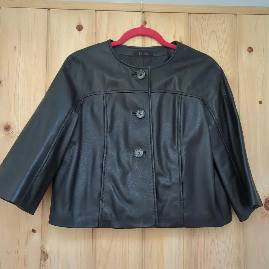 버튼이 달린 블랙 가죽 숏 자켓, 7부 소매 디자인. 백에 턱이 들어가 있어 퍼지는 디자인이 귀엽습니다. 양가죽으로 부드럽고 매끄러운 질감입니다. 11호라고 되어 있지만, 작게 나온 느낌입니다. - 색상: 블랙 - 디자인: 버튼 포함, 숏 기장 - 소매 스타일: 7부 소매 방문해 주셔서 감사합니다.