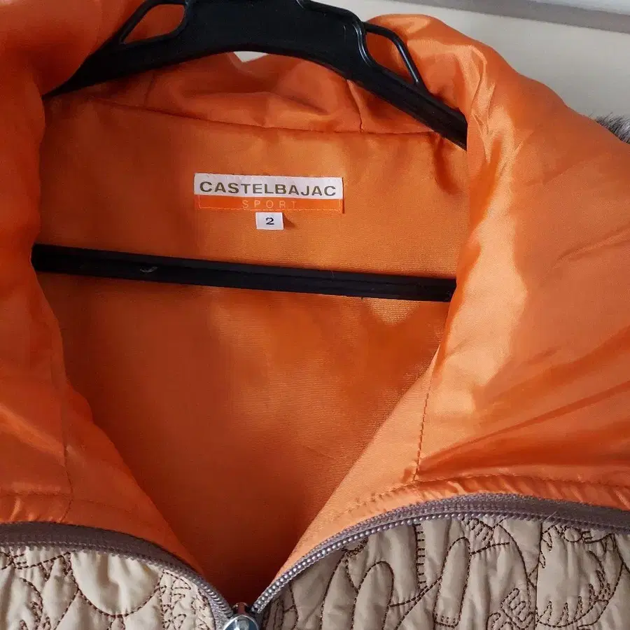 퍼가 달린 후드와 퀼팅 디자인이 특징인 베이지와 오렌지 색상의 자켓입니다. - 브랜드: CASTELBAJAC - 사이즈: 2 - 색상: 베이지, 오렌지 - 특징: 퍼 후드, 퀼팅 디자인 방문해 주셔서 감사합니다.
