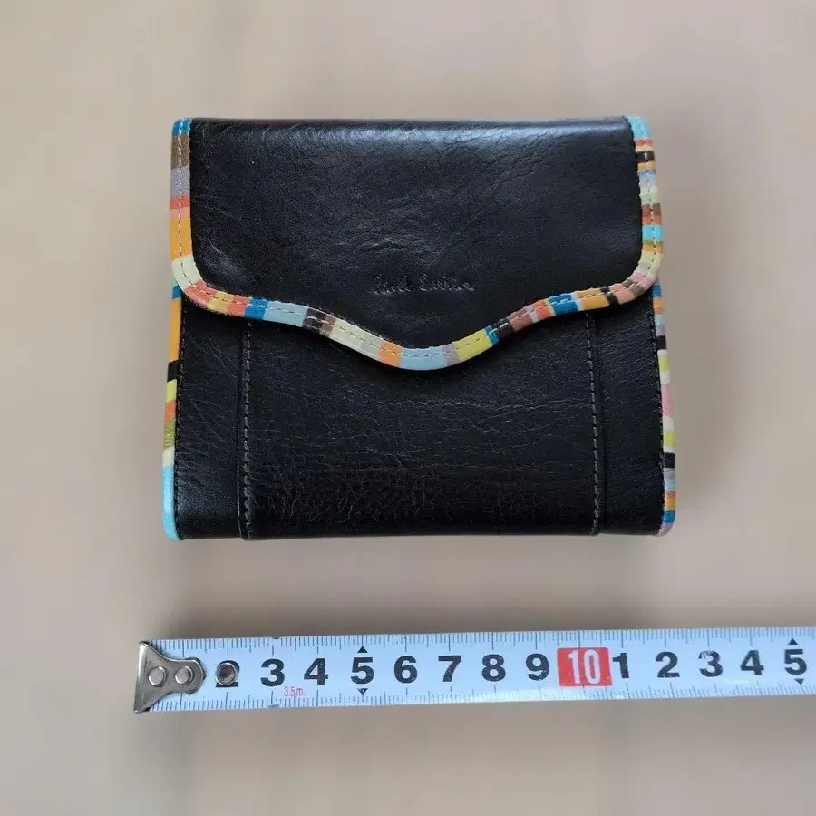 폴스미스 가죽 접이식 지갑 블랙 컬러풀 테두리