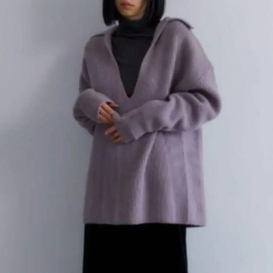 깊은 V넥이 세련된 인상을 주는 니트 풀오버.