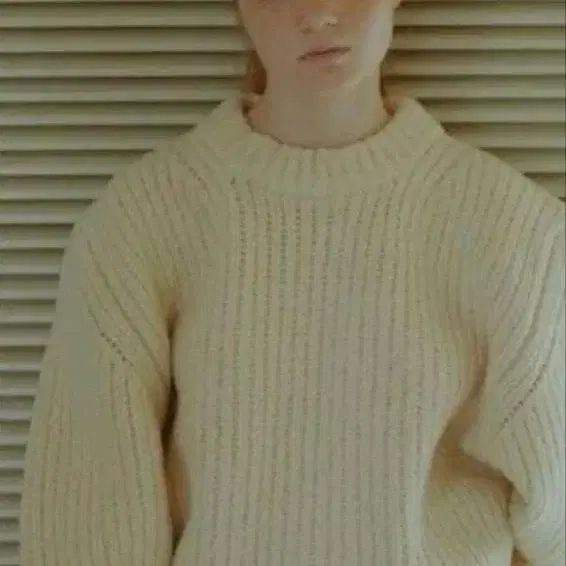 신춘 세일 THE SHISHIKU 시시쿠이 리브 편직 스웨터 아이보리