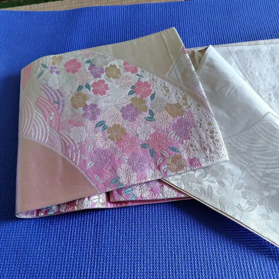 • 연한 베이지 꽃무늬 후쿠로 오비