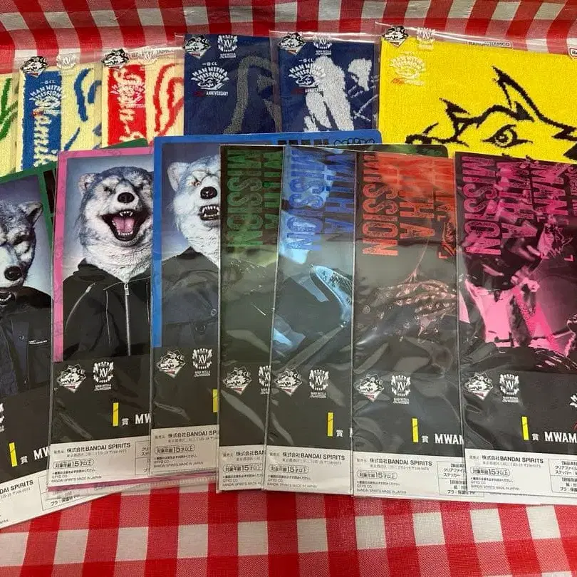 제일복권 MAN WITH A MISSION 15th ANNIVERSARY I상 MWAM 클리어 파일 스티커 세트 7종 J상 핸드 타월 6종 미개봉 새상품입니다. 맨위즈 MWAM 제일복권