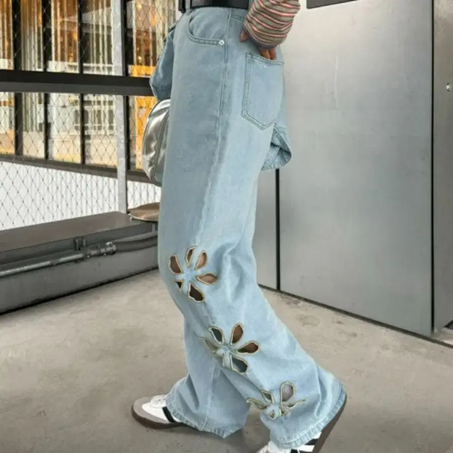 [ HELLO.SANFRANCISCO ] 플라워 컷 아웃 데님 팬츠 XS