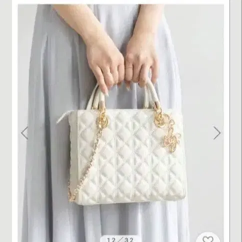 퀼팅 디자인의 화이트 백, 골드 로고 참 포함.