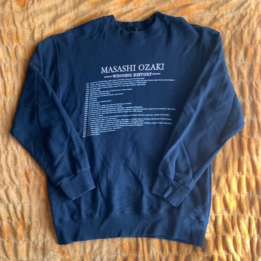 점보 오자키의 위닝 히스토리를 디자인한 네이비 색상의 트레이닝복, 맨투맨.