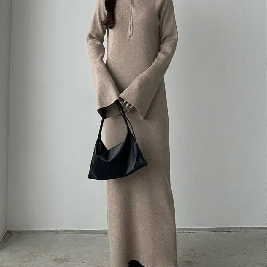 stylemixer 니트 롱 원피스 플레어 슬리브 리브 베이지