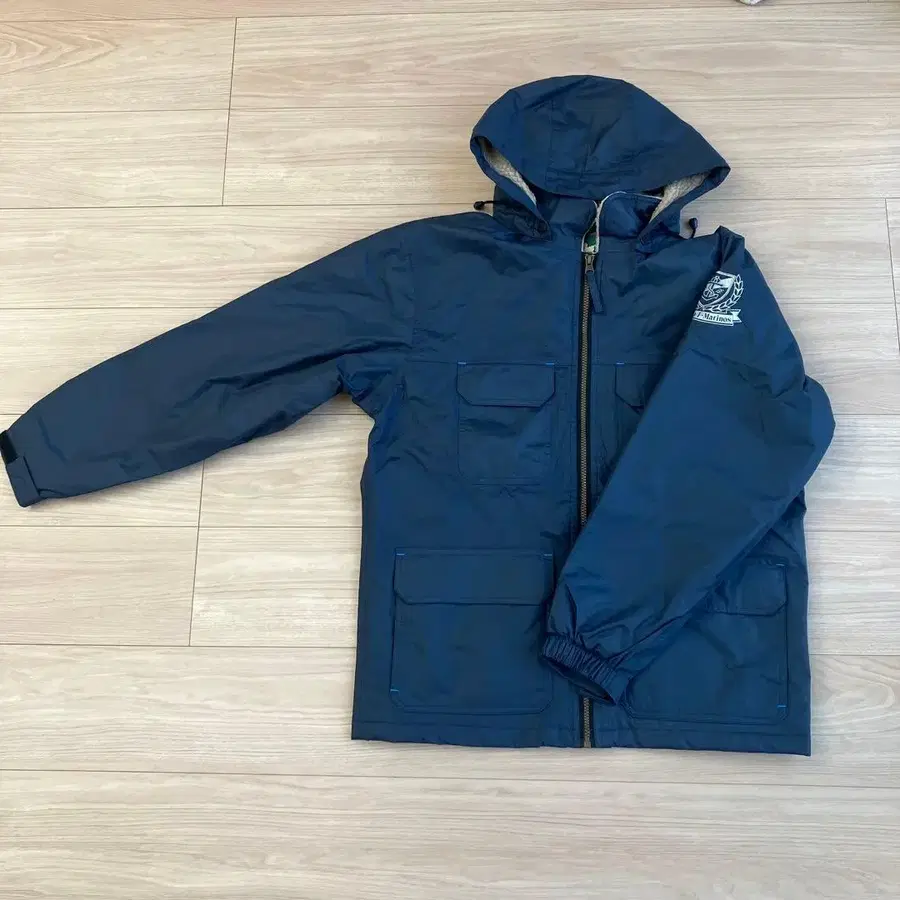 자동 번역되었어요. 원문보기로고스 플리스 안감 네이비 색상 마운틴 후드티, 요코하마 F. 마리노스 로고 포함.
