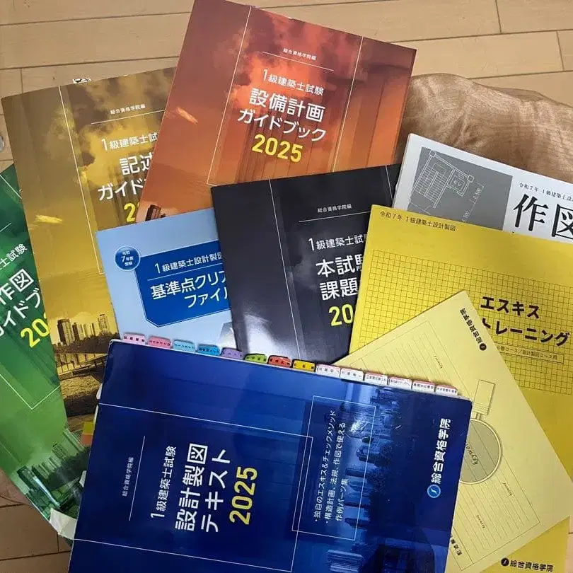 2025년도 설계도 및 시험 문제집을 포함한 자격 취득에 도움이 되는 교재 세트입니다.