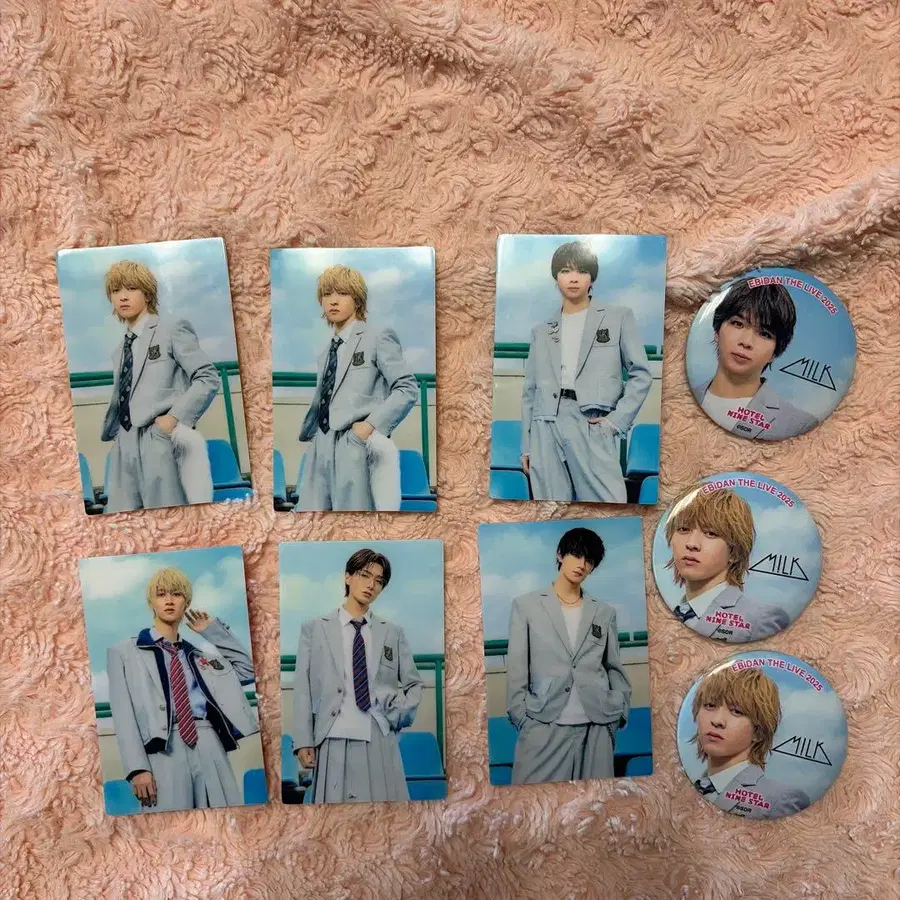 2025년 EBiDANTHELIVE HOTELNINESTAR 전시회 굿즈 M!LK 캔뱃지와 컴플리트 카드 세트입니다. 묶음 구매하시는 분을 우선으로 하겠습니다. 발송 시 살균 시트로 닦고 종이상자로 보강하여 발송합니다. 즉시 구매 가능합니다. #EBiDAN #M!LK #사노 하야토 #야마나카 쥬타로 #요시다 진토 #시오자키 타이치 #시오자키 타이치 #소노 슌타