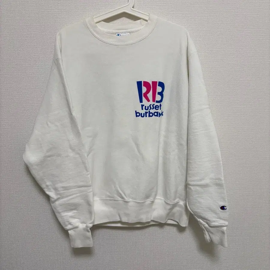rbb store Russet Burbank 31 모티브 맨투맨 챔피온 바디 사용 모델 COLOR : WHITE SIZE : L(Length 70cm, Width 62cm, Sleeve 64cm) rbb store에서 구매했습니다.