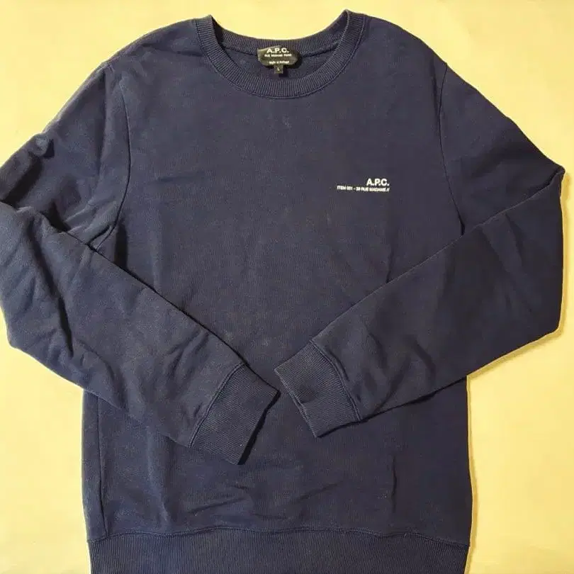 A.P.C. 아페쎄 ITEM 트레이닝복 스웨트 셔츠 H27608 작년에 구매했으나 사이즈가 맞지 않게 되어 판매합니다. 몇 번 착용했지만 상태는 깨끗합니다. 아래 사이즈 정보는 구매 사이트에서 인용한 것입니다. 어깨 너비/소매 길이/기장 어깨 너비 - 45cm 소매 길이 - 66cm 기장 - 65cm 색상 - 네이비 계열 얼룩, 찢김, 냄새 등 - 없음