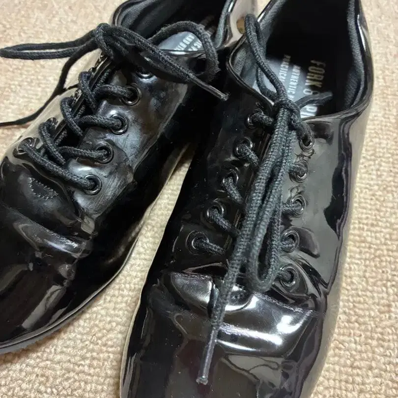 FORK & SPOON의 광택 있는 에나멜 레이스업 슈즈입니다. 블랙 색상이며 사이즈는 38입니다.