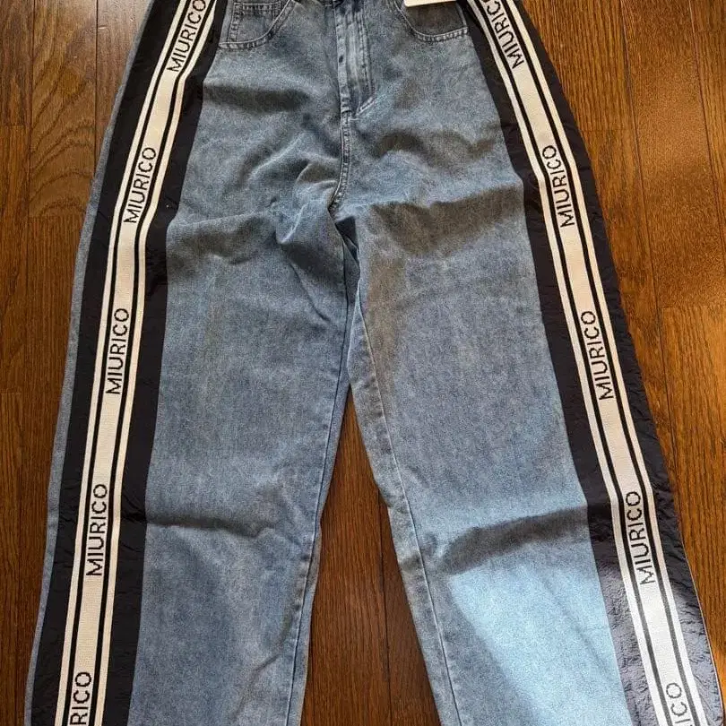 MIURICO의 스트라이프 디자인 데님 팬츠입니다.
