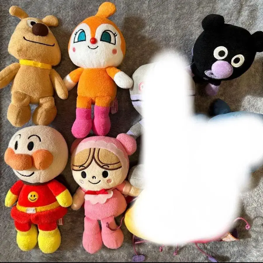 호빵맨 캐릭터 봉제 인형 5개 세트, 약 10cm 사이즈에 컬러풀한 디자인이 특징입니다.