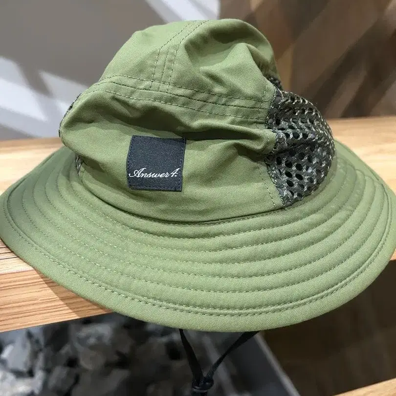 Answer4 앤서포의 햇입니다. 마음에 들어 구매했고, 몇 번 사용했지만, 이치(별로) 어울리지 않아 판매합니다. - 브랜드: Answer4 - 사이즈: 60cm - 소재: 폴리에스테르 100% - 디자인: 메쉬 소재의 사이드 패널 - 색상: 올리브 그린