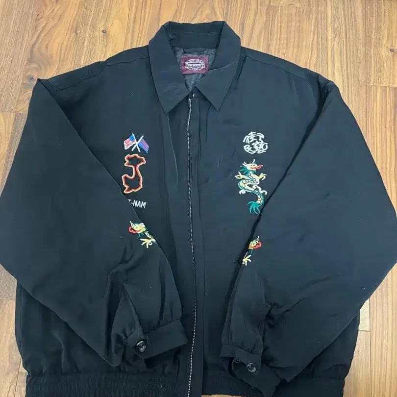 스카잔 수베니어 자켓 극상 자수 90s 풍신뇌신 용 요코스카 새틴