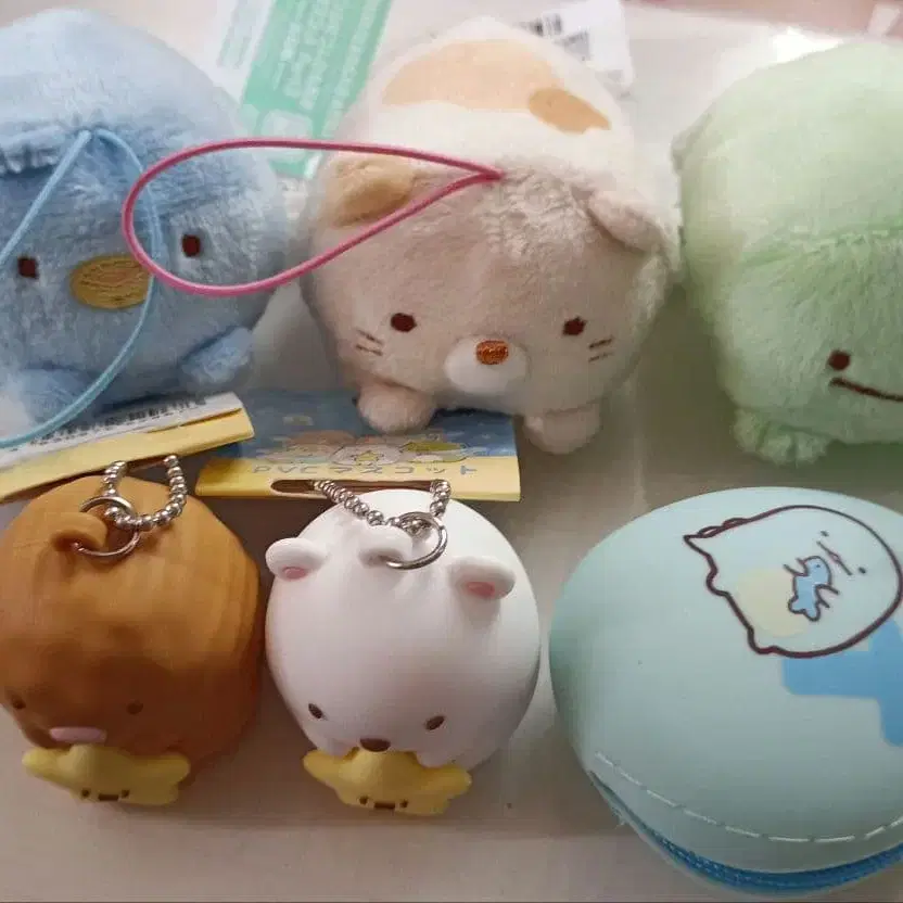 엎드린 마스코트 3개 PVC 마스코트 2개 실리콘 키링 1개 미사용이지만, 세세한 점이 신경 쓰이시는 분은 삼가해 주시기 바랍니다. 스밋코구라시 토카게 고양이 펭귄 시로쿠마 돈카츠