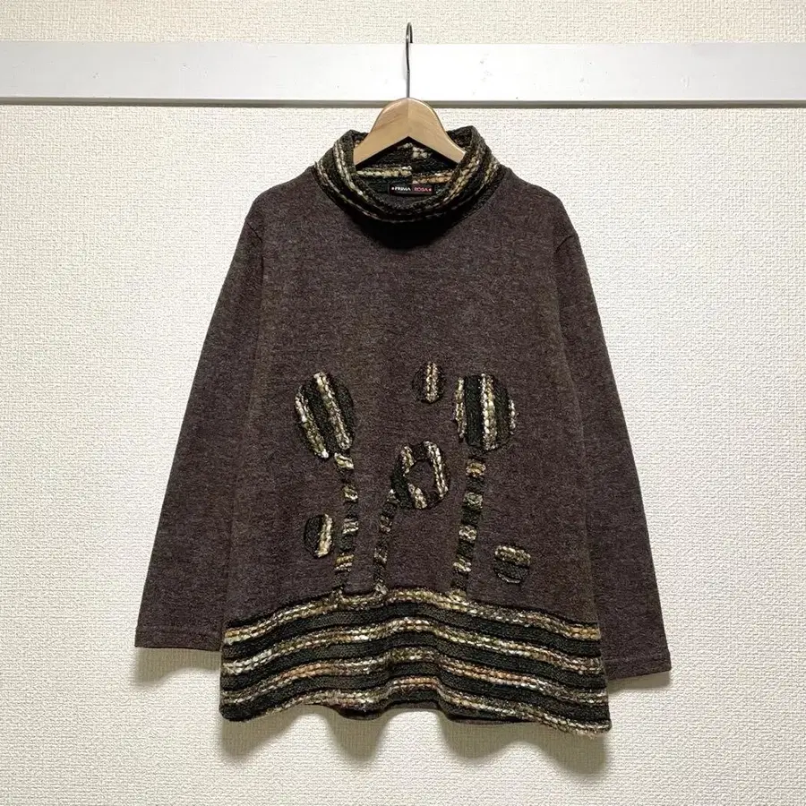 프리마로자 디자인 니트 튜닉 입체편직 자수 모티브 울 혼방