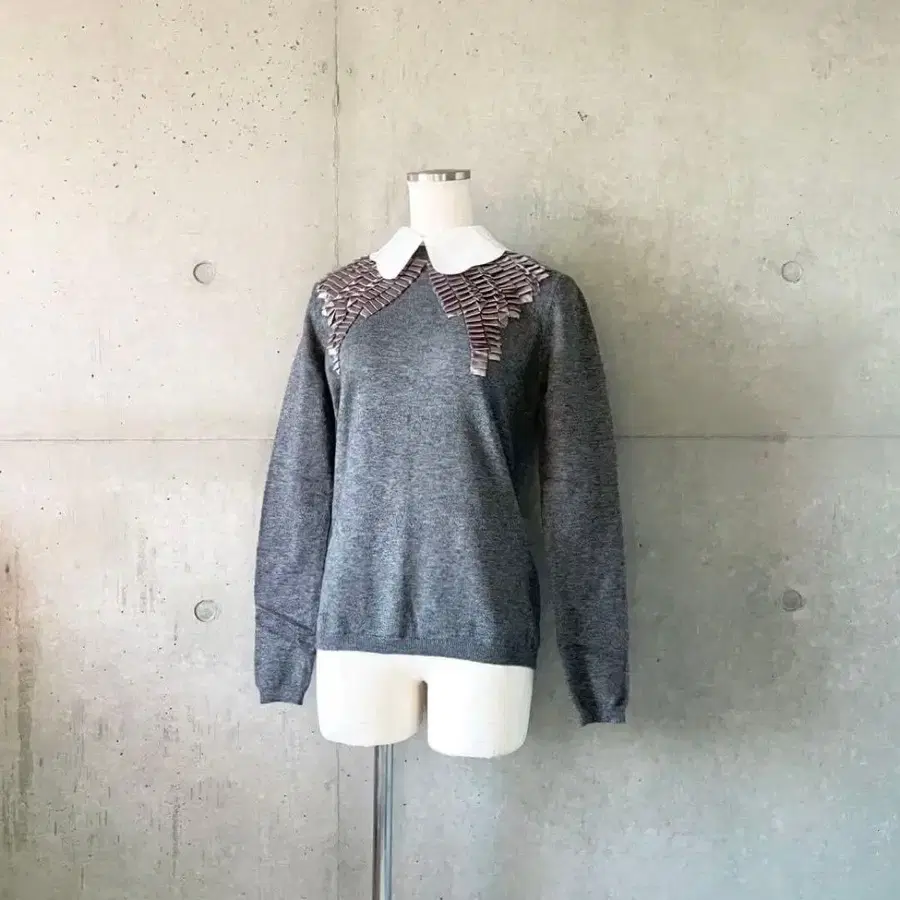 택 포함 새상품 탈착식 옷깃 리본 테이프 니트 그레이 M