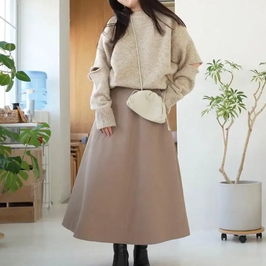 • stylemixer 니트 롱 원피스 플레어 슬리브 리브 베이지