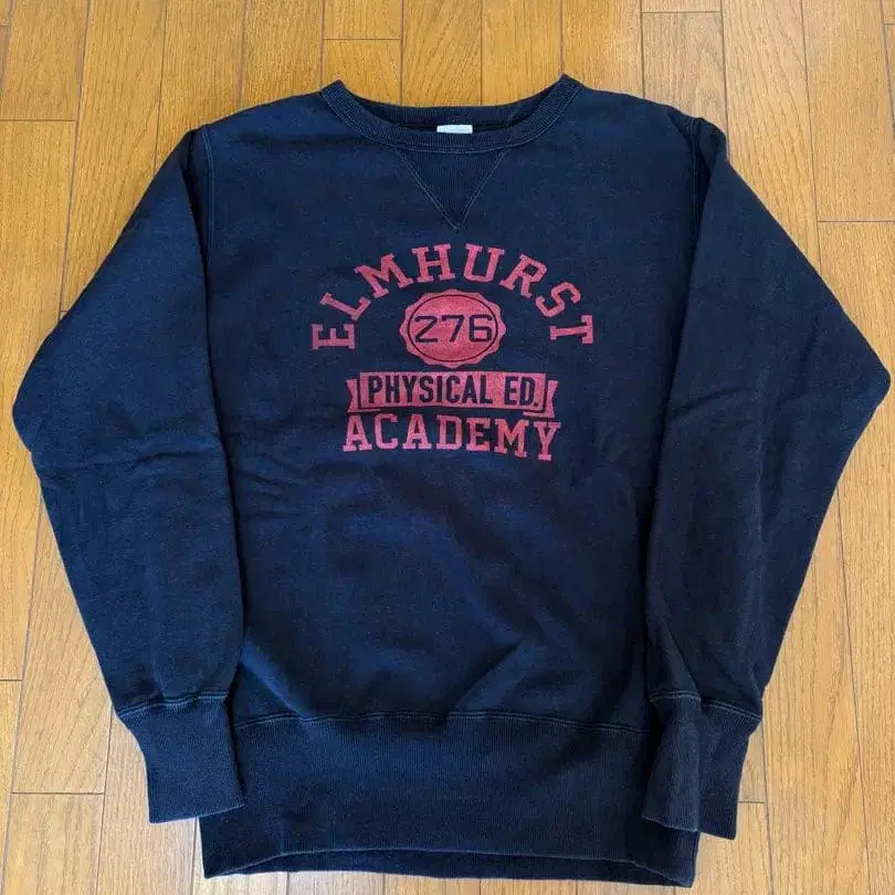 챔피온의 속기모 맨투맨입니다. 빛의 정도에 따라 네이비 컬러처럼 보일 수 있으나 실제 색상은 블랙입니다. 복각 모델로 양V 가제트, 롱 리브, 런택 사양입니다. 기장: 67cm 가슴 너비: 52cm