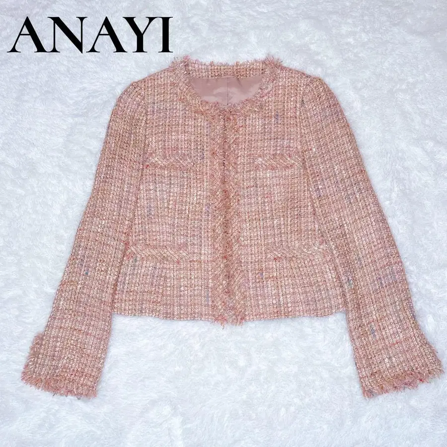 새상품급 ANAYI 아나이 트위드 핑크 노카라 자켓 졸업식 입학식