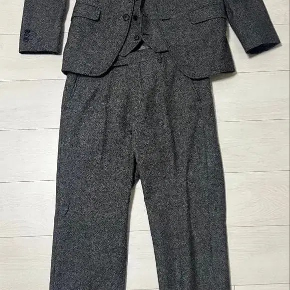 자동 번역되었어요. 원문보기울 혼방 그레이 캐주얼 수트, 자켓, 팬츠, 베스트 3종 세트.