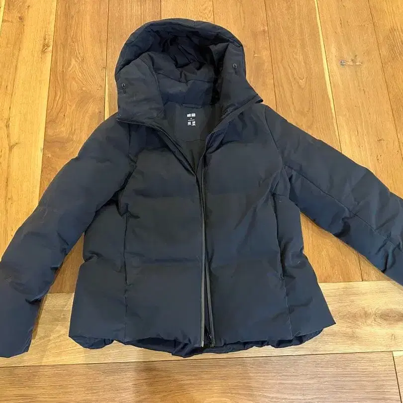 유니클로 심리스 다운 후드 부착 블랙 다운 자켓